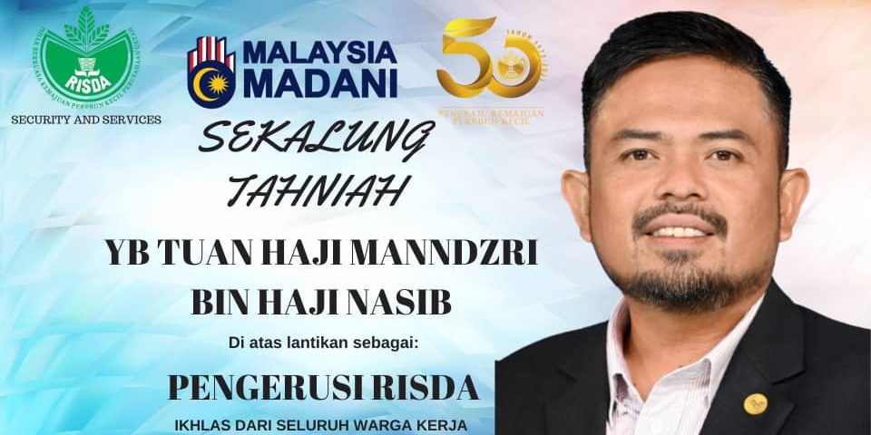SEKALUNG TAHNIAH KEPADA YB TUAN HAJI MANNDZRI B. HJ NASIB DIATAS PERLANTIKAN SEBAGAI PENGERUSI RISDA MALAYSIA