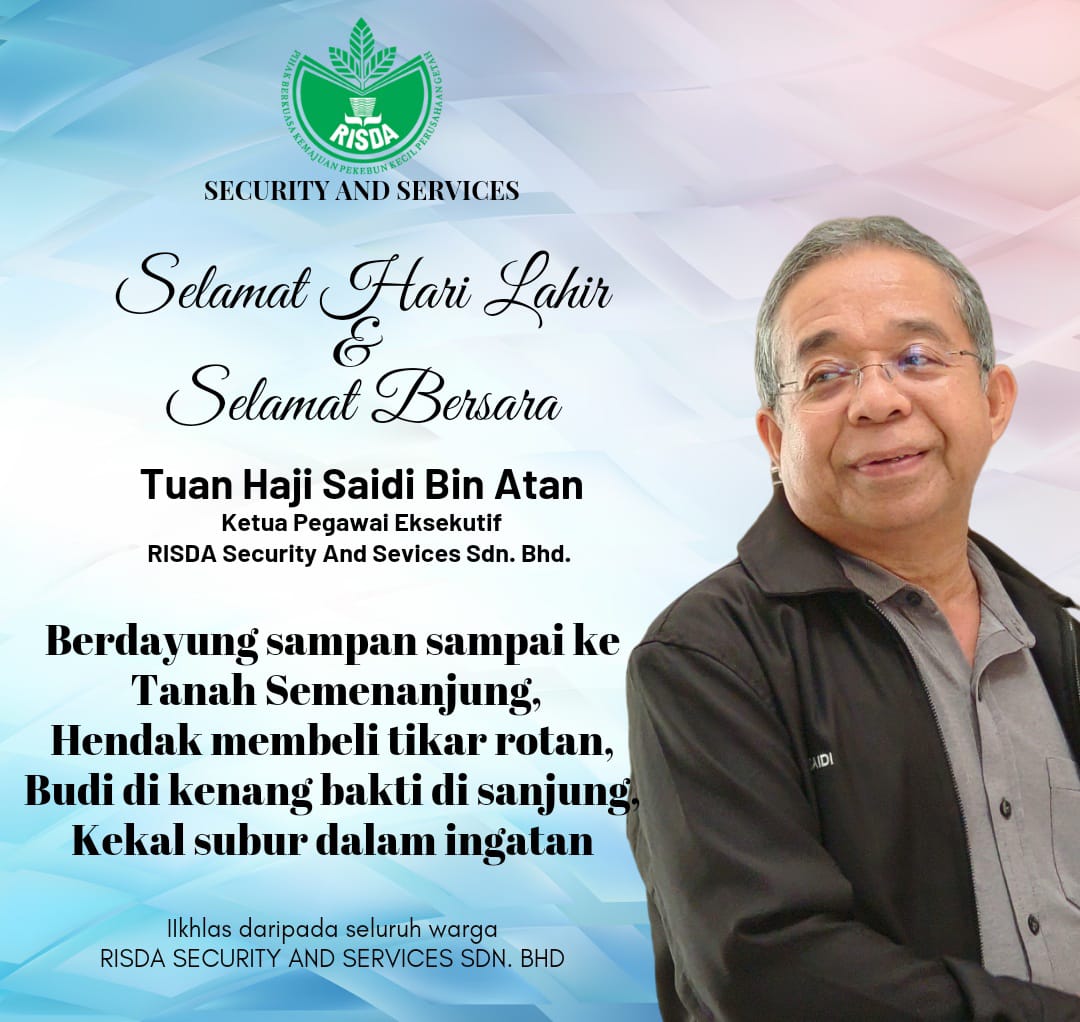 SELAMAT BERSARA TUAN HAJI SAIDI BIN ATAN SEBAGAI KETUA PEGAWAI EKSEKUTIF RISDA SECURITY AND SERVICES SDN. BHD.